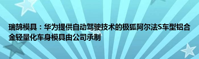 以上就是【瑞鹄模具:华为提供自动驾驶技术的极狐阿尔法S车型铝合金轻量化车身模具由公司承制】相关内容。
