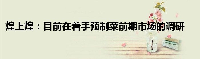 以上就是【煌上煌:目前在着手预制菜前期市场的调研】相关内容。