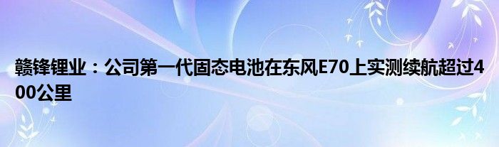 以上就是【赣锋锂业:公司第一代固态电池在东风E70上实测续航超过400公里】相关内容。