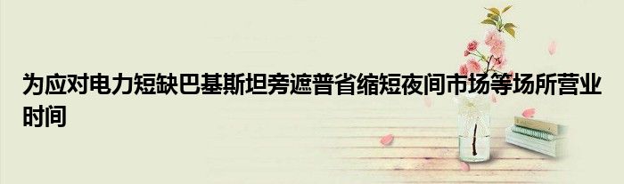 以上就是【为应对电力短缺巴基斯坦旁遮普省缩短夜间市场等场所营业时间】相关内容。