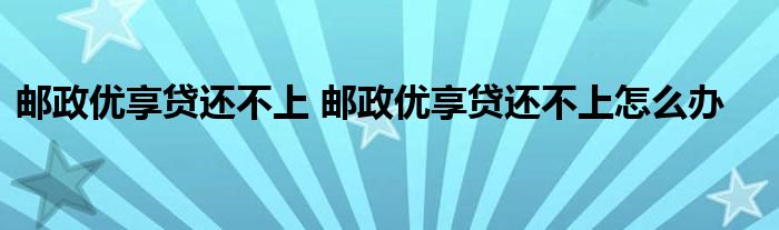 导读 大家好,小理来为大家解答以上的问题。邮政优享贷还不上,邮政优享贷还不上怎么办这个很多人还不知道,现在让我们一起来看看吧!