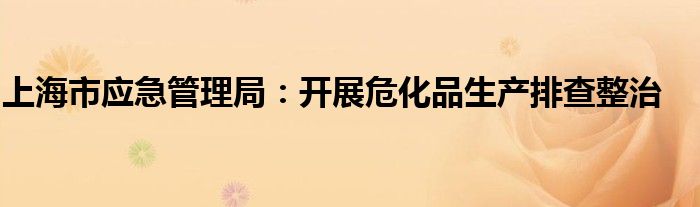 以上就是【上海市应急管理局:开展危化品生产排查整治】相关内容。