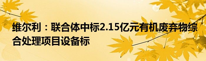 以上就是【维尔利:联合体中标2.15亿元有机废弃物综合处理项目设备标】相关内容。