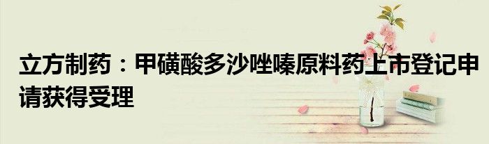 以上就是【立方制药:甲磺酸多沙唑嗪原料药上市登记申请获得受理】相关内容。
