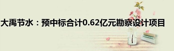以上就是【大禹节水:预中标合计0.62亿元勘察设计项目】相关内容。