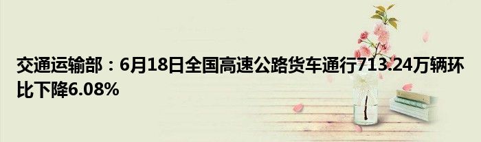 以上就是【交通运输部:6月18日全国高速公路货车通行713.24万辆环比下降6.08%】相关内容。