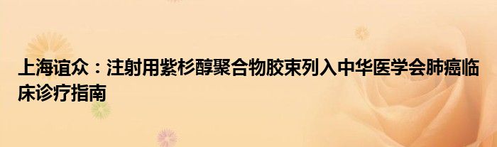 以上就是【上海谊众:注射用紫杉醇聚合物胶束列入中华医学会肺癌临床诊疗指南】相关内容。
