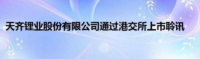 导读 6月19日电,据港交所文件,天齐锂业股份有限公司通过港交所上市聆讯。