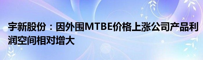 以上就是【宇新股份:因外围MTBE价格上涨公司产品利润空间相对增大】相关内容。