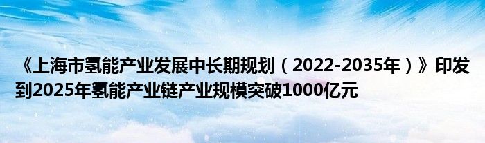 以上就是【《上海市氢能产业发展中长期规划(2022-2035年)》印发到2025年氢能产业链产业规模突破1000亿元】相关内容。