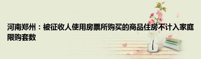 以上就是【河南郑州:被征收人使用房票所购买的商品住房不计入家庭限购套数】相关内容。