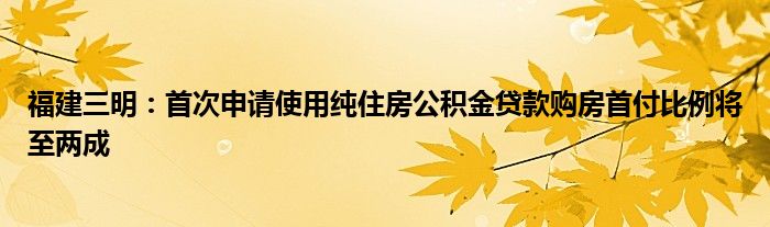 以上就是【福建三明:首次申请使用纯住房公积金贷款购房首付比例将至两成】相关内容。