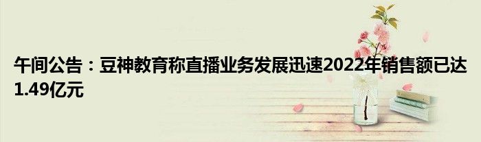 以上就是【午间公告:豆神教育称直播业务发展迅速2022年销售额已达1.49亿元】相关内容。