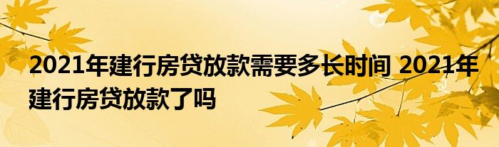 导读 大家好,小理来为大家解答以上的问题。2021年建行房贷放款需要多长时间,2021年建行房贷放款了吗这个很多人还不知道,现在让我们一起来看看吧