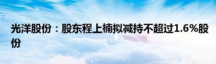 以上就是【光洋股份:股东程上楠拟减持不超过1.6%股份】相关内容。