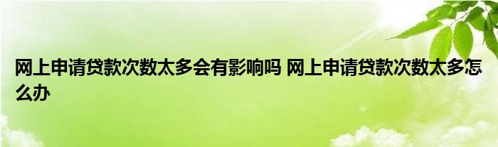 导读 大家好,小理来为大家解答以上的问题。网上申请贷款次数太多会有影响吗,网上申请贷款次数太多怎么办这个很多人还不知道,现在让我们一起来看