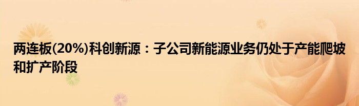 以上就是【两连板(20%)科创新源:子公司新能源业务仍处于产能爬坡和扩产阶段】相关内容。