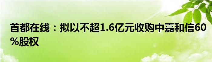 以上就是【首都在线:拟以不超1.6亿元收购中嘉和信60%股权】相关内容。