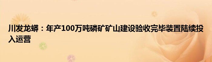以上就是【川发龙蟒:年产100万吨磷矿矿山建设验收完毕装置陆续投入运营】相关内容。