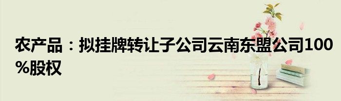 以上就是【农产品:拟挂牌转让子公司云南东盟公司100%股权】相关内容。