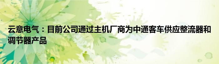 以上就是【云意电气:目前公司通过主机厂商为中通客车供应整流器和调节器产品】相关内容。