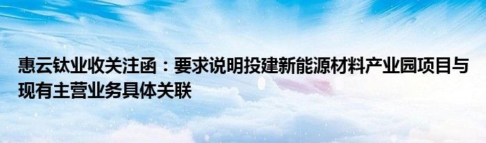 以上就是【惠云钛业收关注函:要求说明投建新能源材料产业园项目与现有主营业务具体关联】相关内容。