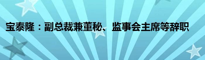 以上就是【宝泰隆:副总裁兼董秘、监事会主席等辞职】相关内容。