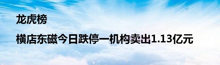 以上就是【龙虎榜|横店东磁今日跌停一机构卖出1.13亿元】相关内容。