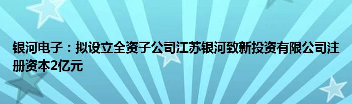 以上就是【银河电子:拟设立全资子公司江苏银河致新投资有限公司注册资本2亿元】相关内容。