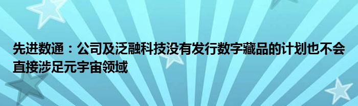 以上就是【先进数通:公司及泛融科技没有发行数字藏品的计划也不会直接涉足元宇宙领域】相关内容。