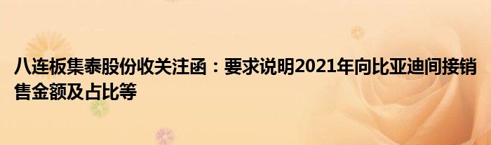 以上就是【八连板集泰股份收关注函:要求说明2021年向比亚迪间接销售金额及占比等】相关内容。