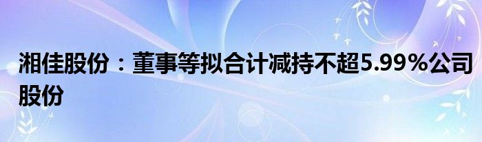 以上就是【湘佳股份:董事等拟合计减持不超5.99%公司股份】相关内容。