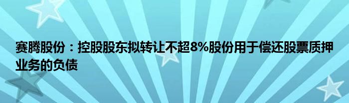 以上就是【赛腾股份:控股股东拟转让不超8%股份用于偿还股票质押业务的负债】相关内容。