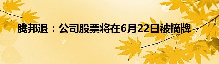 以上就是【腾邦退:公司股票将在6月22日被摘牌】相关内容。