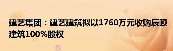 以上就是【建艺集团:建艺建筑拟以1760万元收购辰颐建筑100%股权】相关内容。