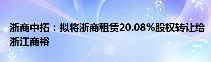 以上就是【浙商中拓:拟将浙商租赁20.08%股权转让给浙江商裕】相关内容。