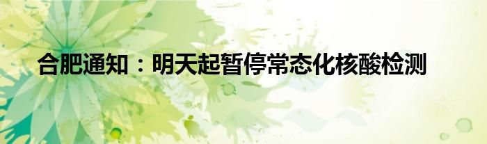 以上就是【合肥通知:明天起暂停常态化核酸检测】相关内容。