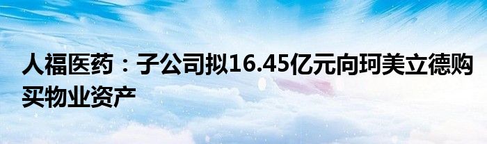 以上就是【人福医药:子公司拟16.45亿元向珂美立德购买物业资产】相关内容。