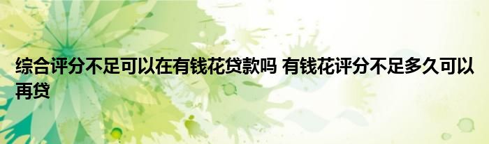 导读 大家好,小理来为大家解答以上的问题。综合评分不足可以在有钱花贷款吗,有钱花评分不足多久可以再贷这个很多人还不知道,现在让我们一起来看