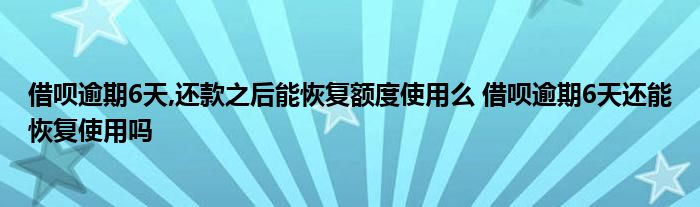导读 大家好,小理来为大家解答以上的问题。借呗逾期6天,还款之后能恢复额度使用么,借呗逾期6天还能恢复使用吗这个很多人还不知道,现在让我们一