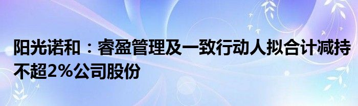 以上就是【阳光诺和:睿盈管理及一致行动人拟合计减持不超2%公司股份】相关内容。