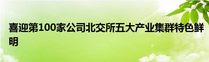 以上就是【喜迎第100家公司北交所五大产业集群特色鲜明】相关内容。