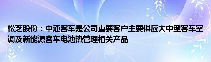 以上就是【松芝股份:中通客车是公司重要客户主要供应大中型客车空调及新能源客车电池热管理相关产品】相关内容。