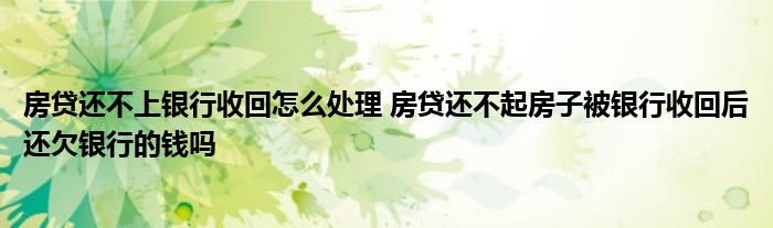 导读 大家好,小理来为大家解答以上的问题。房贷还不上银行收回怎么处理,房贷还不起房子被银行收回后还欠银行的钱吗这个很多人还不知道,现在让我