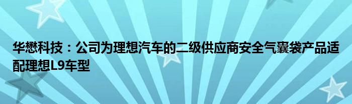 以上就是【华懋科技:公司为理想汽车的二级供应商安全气囊袋产品适配理想L9车型】相关内容。