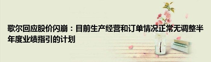 以上就是【歌尔回应股价闪崩:目前生产经营和订单情况正常无调整半年度业绩指引的计划】相关内容。