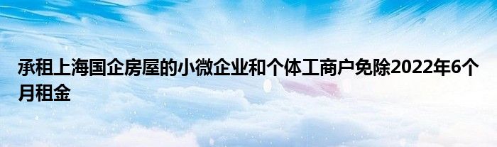 以上就是【承租上海国企房屋的小微企业和个体工商户免除2022年6个月租金】相关内容。