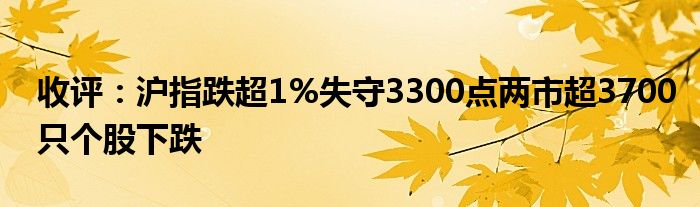 以上就是【收评:沪指跌超1%失守3300点两市超3700只个股下跌】相关内容。