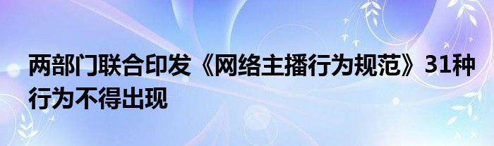 以上就是【两部门联合印发《网络主播行为规范》31种行为不得出现】相关内容。