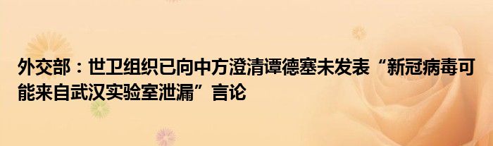 以上就是【外交部:世卫组织已向中方澄清谭德塞未发表“新冠病毒可能来自武汉实验室泄漏”言论】相关内容。